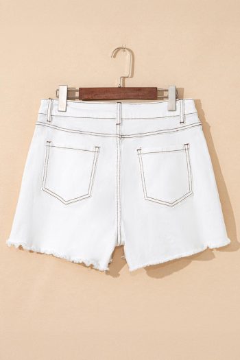 Women White 4th Of July Sequin Star Patched Raw Hem Denim Shorts | Jeans