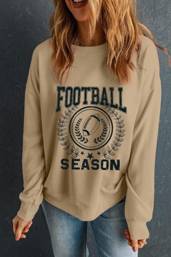 Women Khaki Game Day Rugby Football Season Graphic Sweatshirt | Sweatshirts