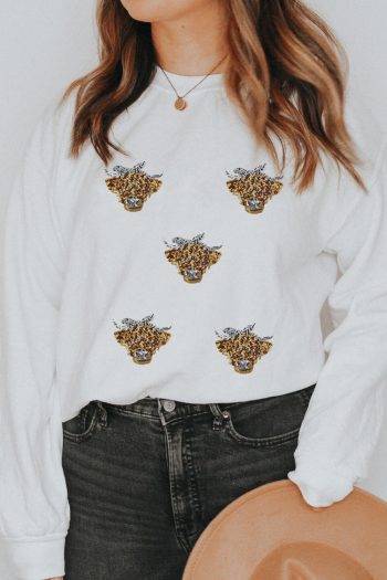 Women White Sequin Animal Patched Drop Shoulder Sweatshirt | Sweatshirts