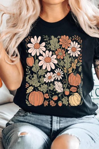 Women Black Wild Flower Pumpkin Print T Shirt | Tees & Tanks