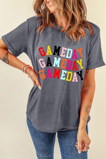 Women Gray Gameday Letter Crewneck T Shirt | Tees & Tanks