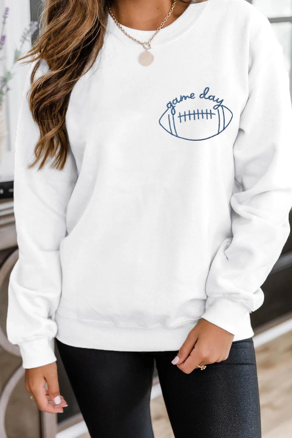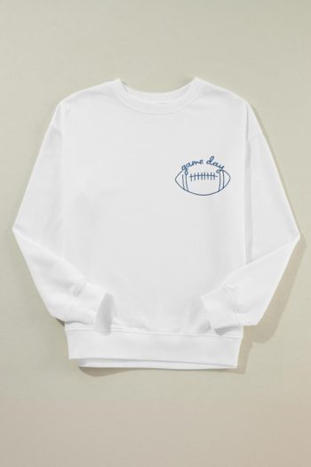 - Stay Stylish And Cozy In This White Game Day Football-Embroidered Casual Sweatshirt, Perfect For Daily Wear.